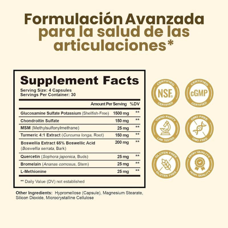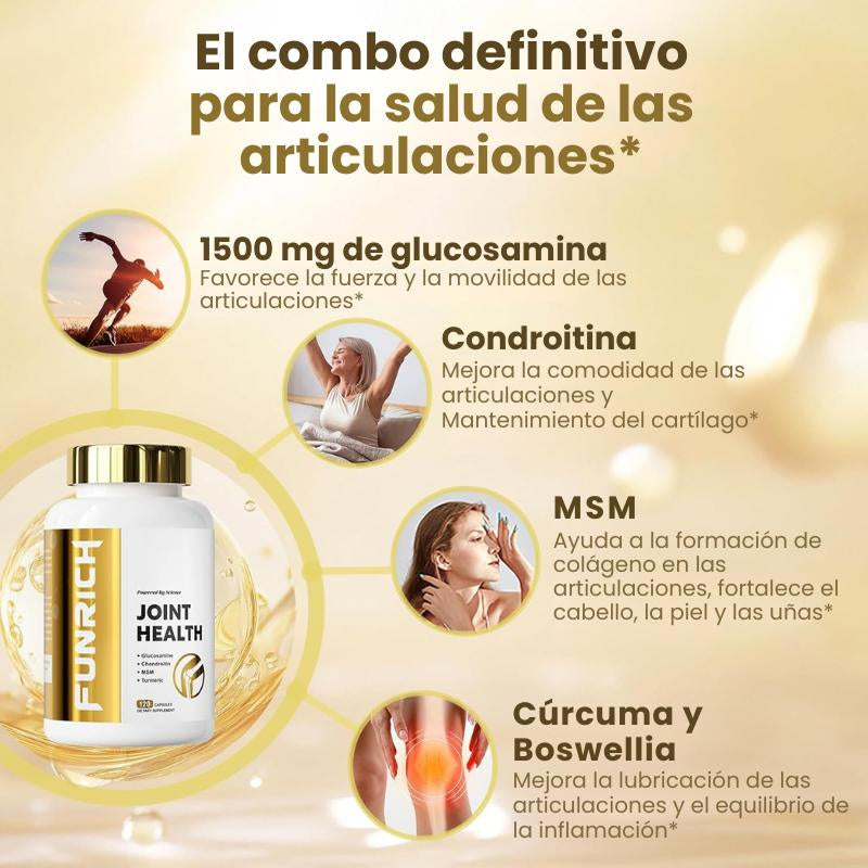 FUNRICH Glucosamina + Condroitina + MSM trabaja desde adentro, apoyando articulaciones, músculos y tejidos que influyen en la presión del nervio ciático.